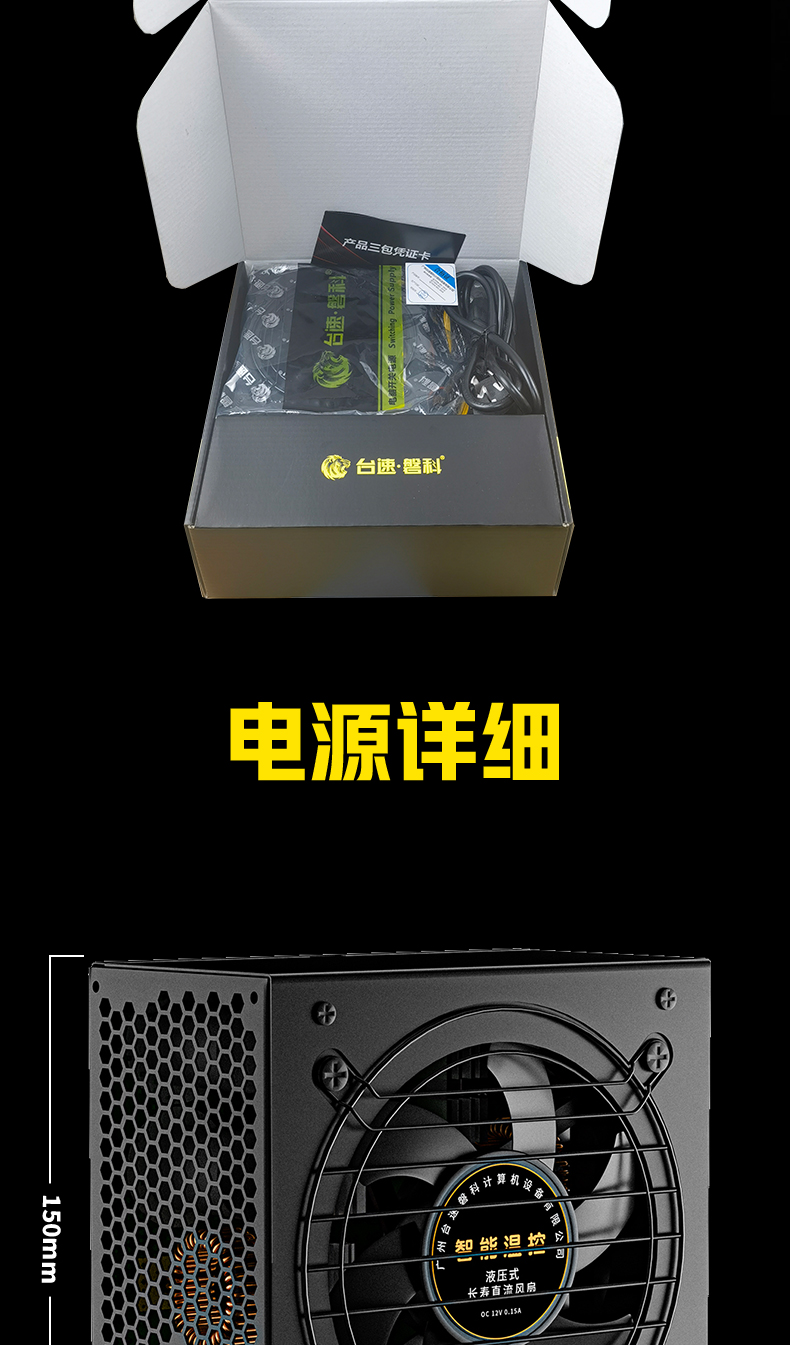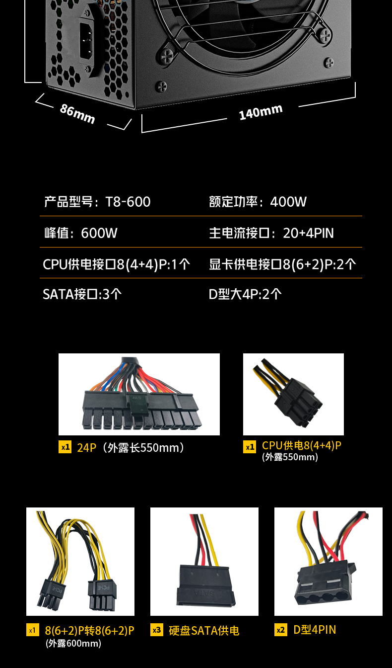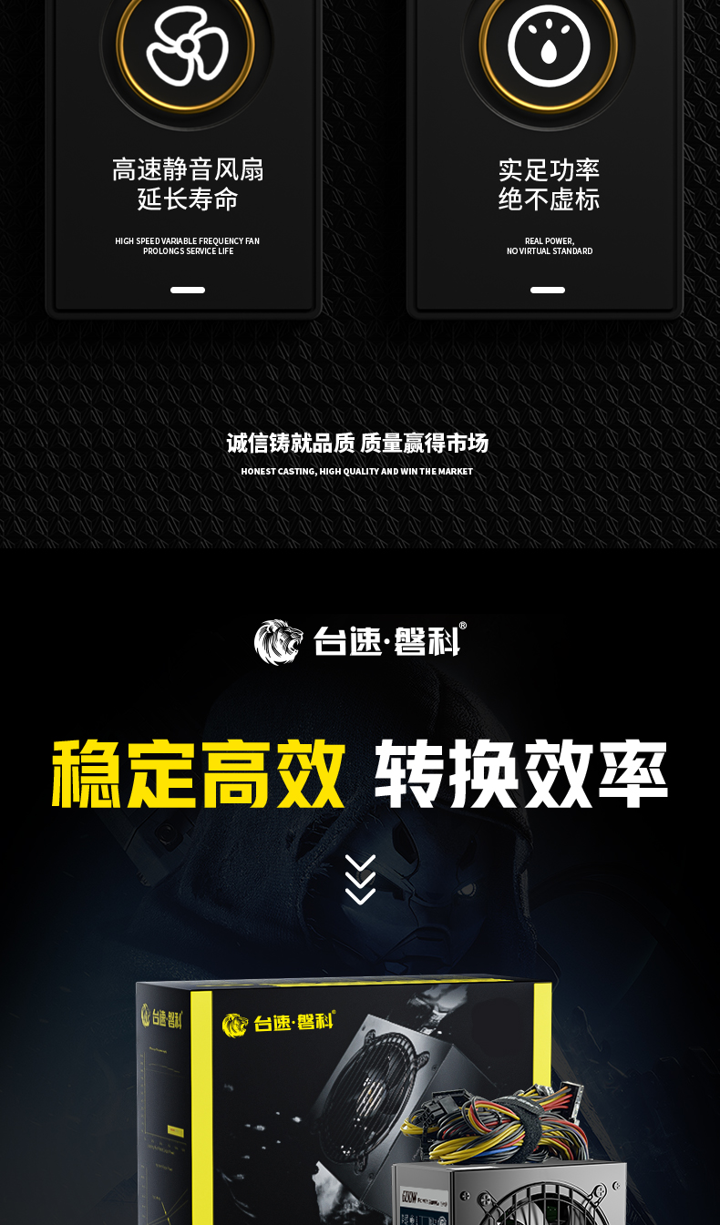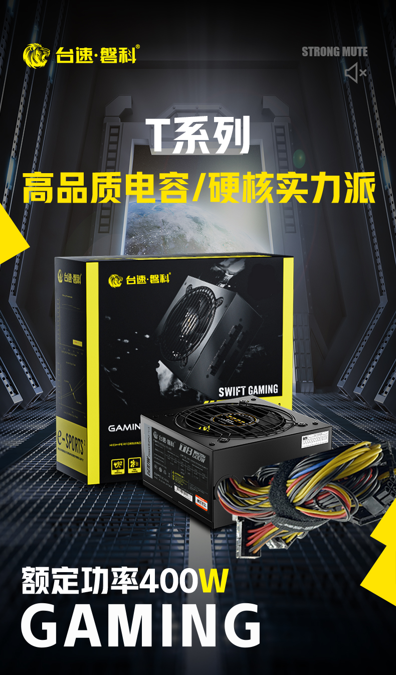 臺速磐科T8-600額定400W背走線靜音溫控節能防雷臺式機3C安規電腦開關電源